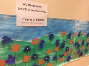 A l'occasion du 100ème anniversaire de la fin de la guerre 14-18, de nombreuses activités ont été organisées au sein de l'école primaire : chants des élèves de CM2 devant les autres classes, exposés et affiches de commémoration réalisés par les plus grands, activités manuelles de création de bleuets et de poppies (coquelicots), fleurs symboles de la 1ère guerre mondiale. Petits et grands ont tous été sensibilisés à ce grand moment historique.