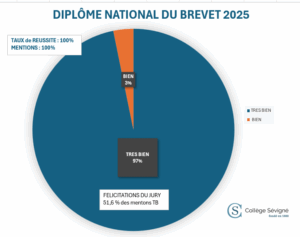 Nous avons la grande joie de partager les excellents résultats obtenus par les élèves de 3e du Collège Sévigné au DNB 2025 :