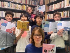 Et parmi les invités chanceux de son anniversaire se trouvaient les personnes qui ont accompagné la classe de 4A dans la réalisation d’un livret présentant une galerie de femmes, femmes politiques et femmes de lettres, qui ont entouré Marie de Sévigné : deux écrivaines, Laurence Paix-Rusterholtz et Chris LAVAQUERIE-KLEIN, leur enseignante de français laurence sladkowski-Creissen et ★ Caroline PRAT graphiste qui a mis en ordre toutes ses lettres, écritures, descriptions que les élèves avaient produites.