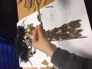 La matière de l’écorce des arbres, réalisée à l’aide d’encre de chine plus ou moins diluée à l’eau pour jouer avec la transparence.