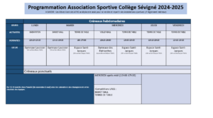 En complément des séances d'EPS, le Collège Sévigné offre à vos enfants la possibilité de pratiquer une activité sportive régulière tout au long de l'année scolaire.